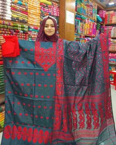 অরিজিনাল মিনাকারি জামদানী থ্রি পিছ